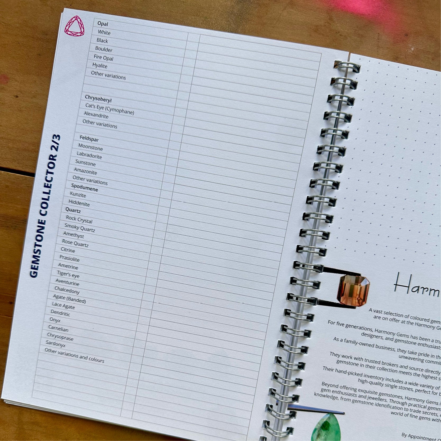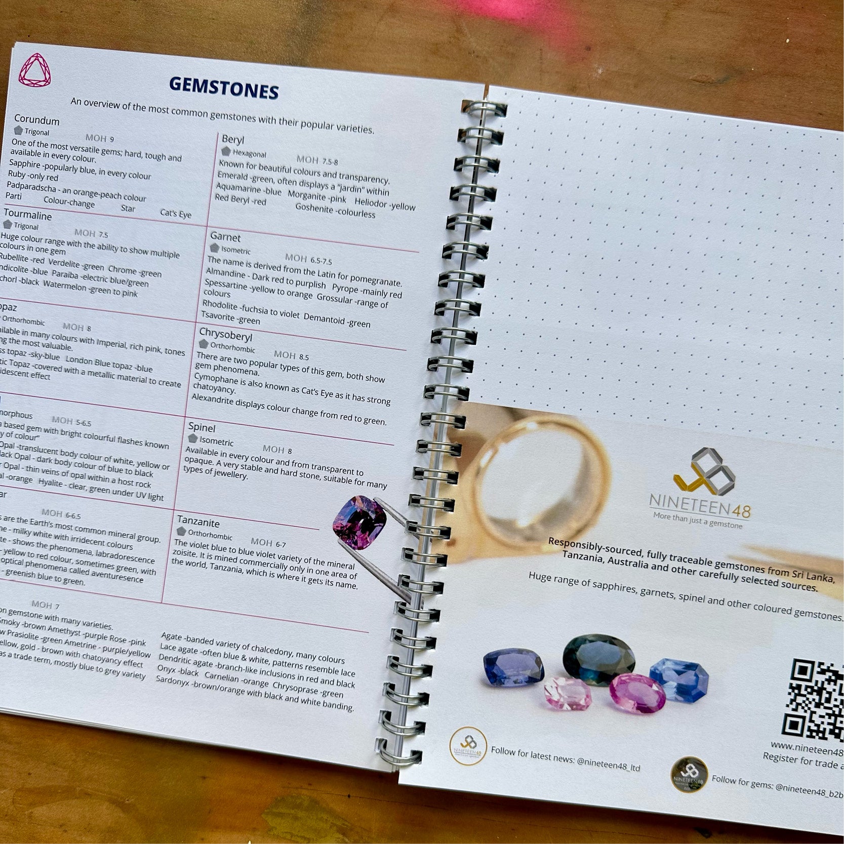 A brilliantly designed 140-page dotted notebook, perfect for jewellery sketches, notes, and design ideas. Inside, you’ll find more than just blank pages — it’s filled with practical gemmology information, lists to help track and complete your gemstone collection and quick references to trusted Get Stoned suppliers.